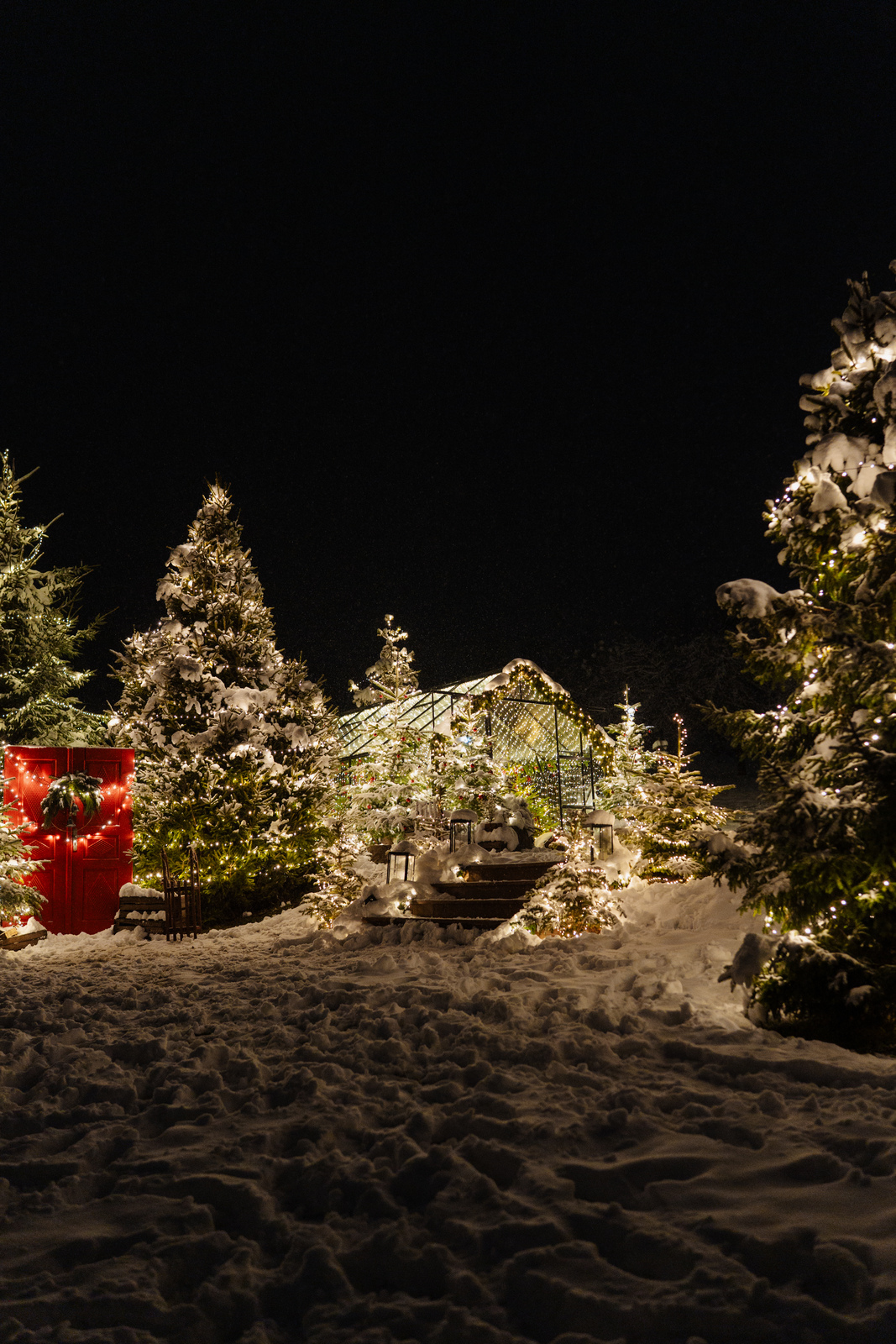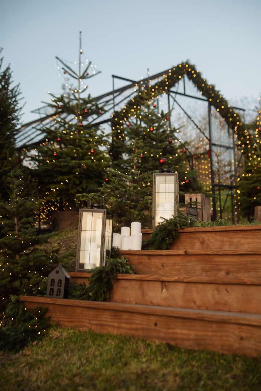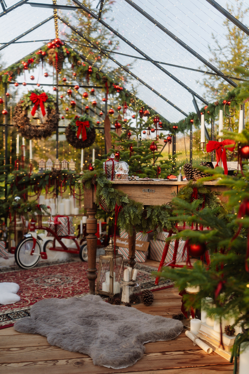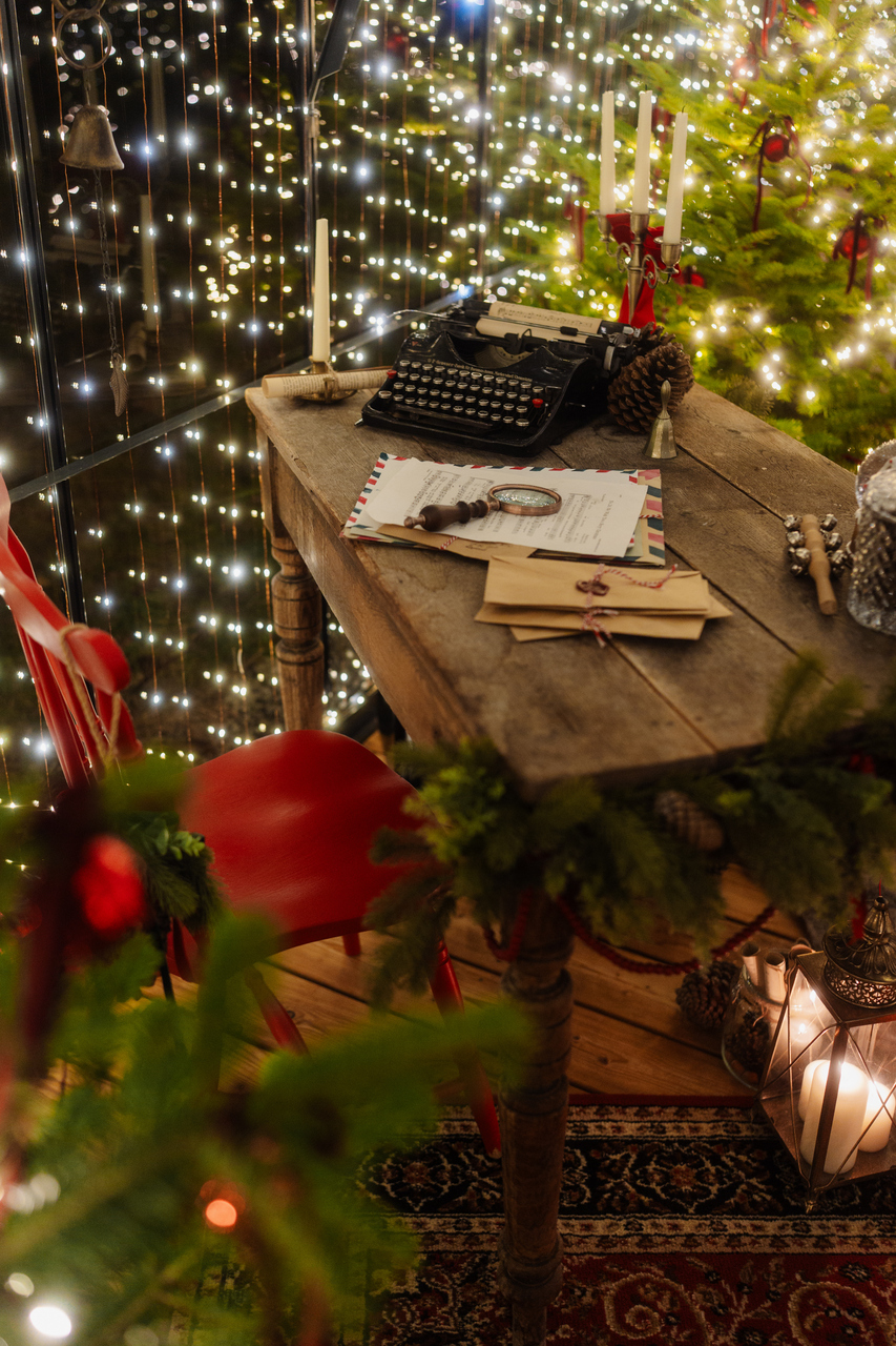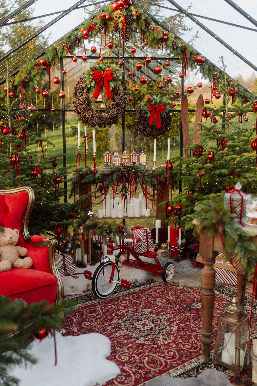 Witajcie w naszym baśniowym domku! Po raz kolejny stworzyliśmy dla Was bajkową aranżację oświetloną tysiącami światełek, pełną szyszek, dzwonków i wstążek. Nie zabrakło fotela Świętego Mikołaja i wiekowego stolika, przy którym dzieciaki będą mogły napisać świąteczną kartkę lub list do M. Dodatkowo udekorowaliśmy światełkami nasze kilkumetrowe choinki. Drzwi z poprzedniej aranżacji zyskały nową świąteczną odsłonę. 🎄