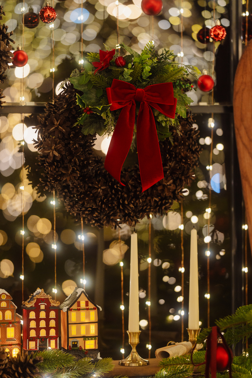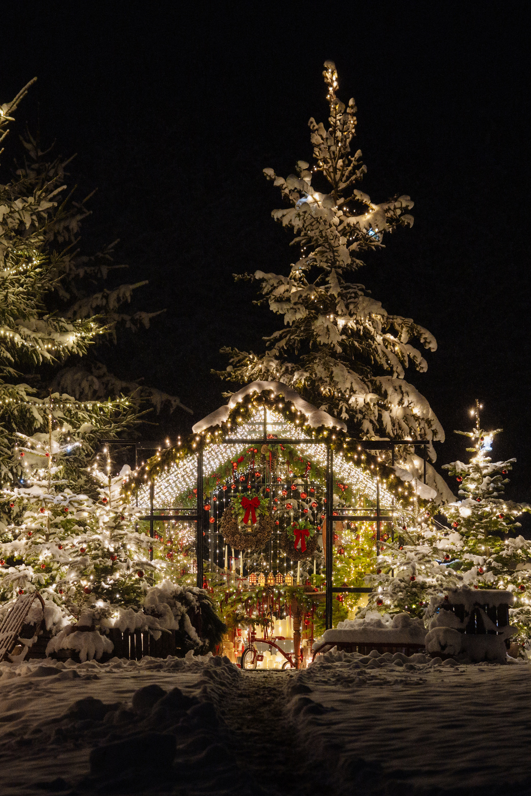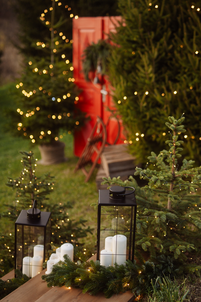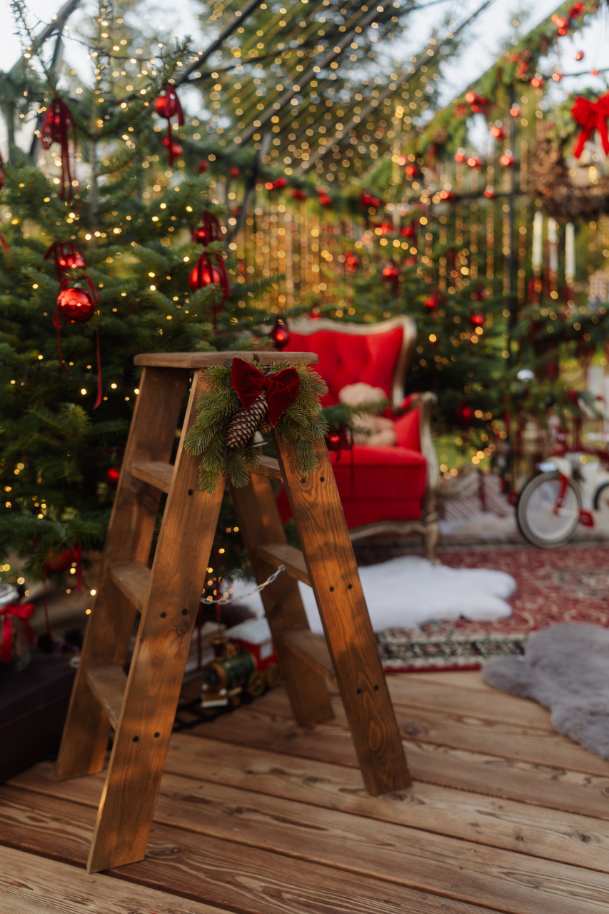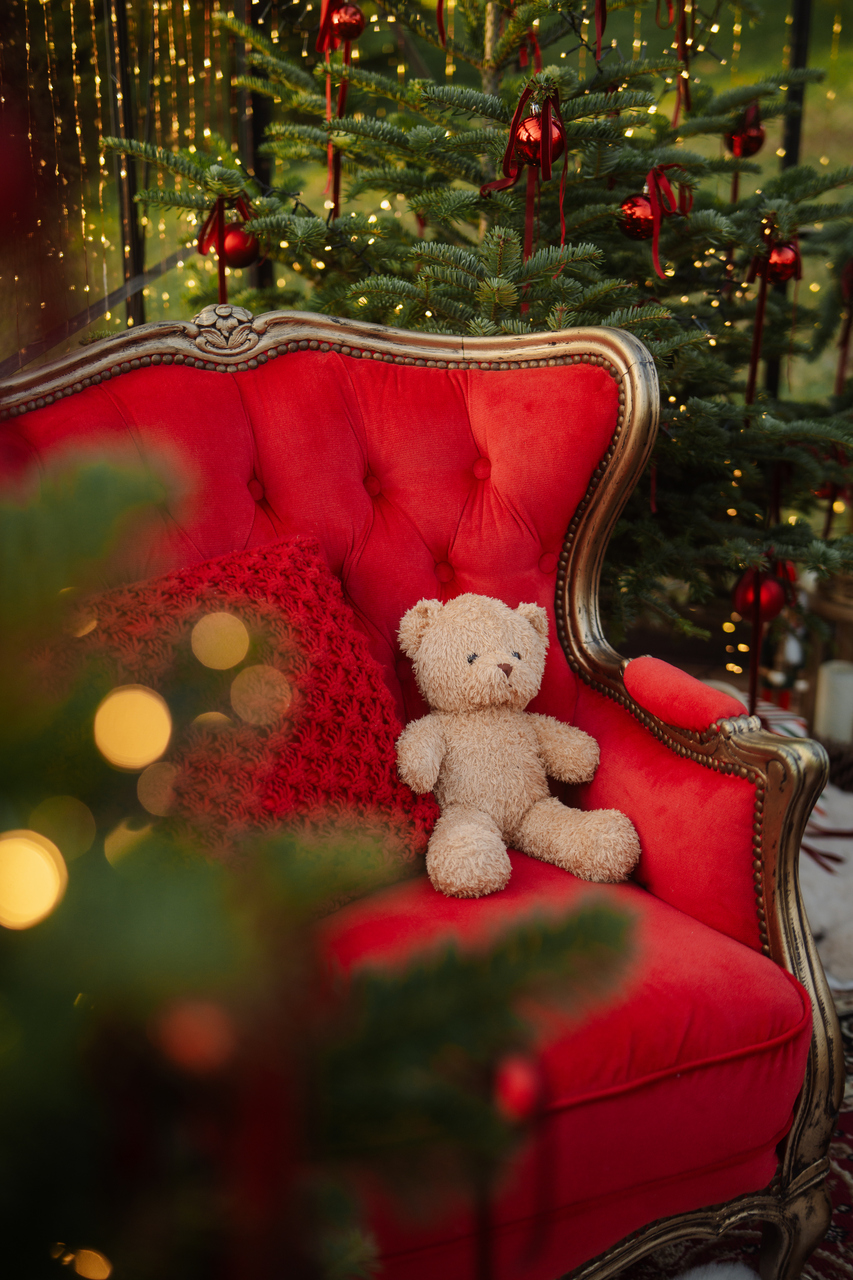 Witajcie w naszym baśniowym domku! Po raz kolejny stworzyliśmy dla Was bajkową aranżację oświetloną tysiącami światełek, pełną szyszek, dzwonków i wstążek. Nie zabrakło fotela Świętego Mikołaja i wiekowego stolika, przy którym dzieciaki będą mogły napisać świąteczną kartkę lub list do M. Dodatkowo udekorowaliśmy światełkami nasze kilkumetrowe choinki. Drzwi z poprzedniej aranżacji zyskały nową świąteczną odsłonę. 🎄
